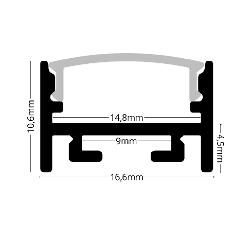 Profil za LED traku nadgradni 11, crni + crni poklopac, 2m